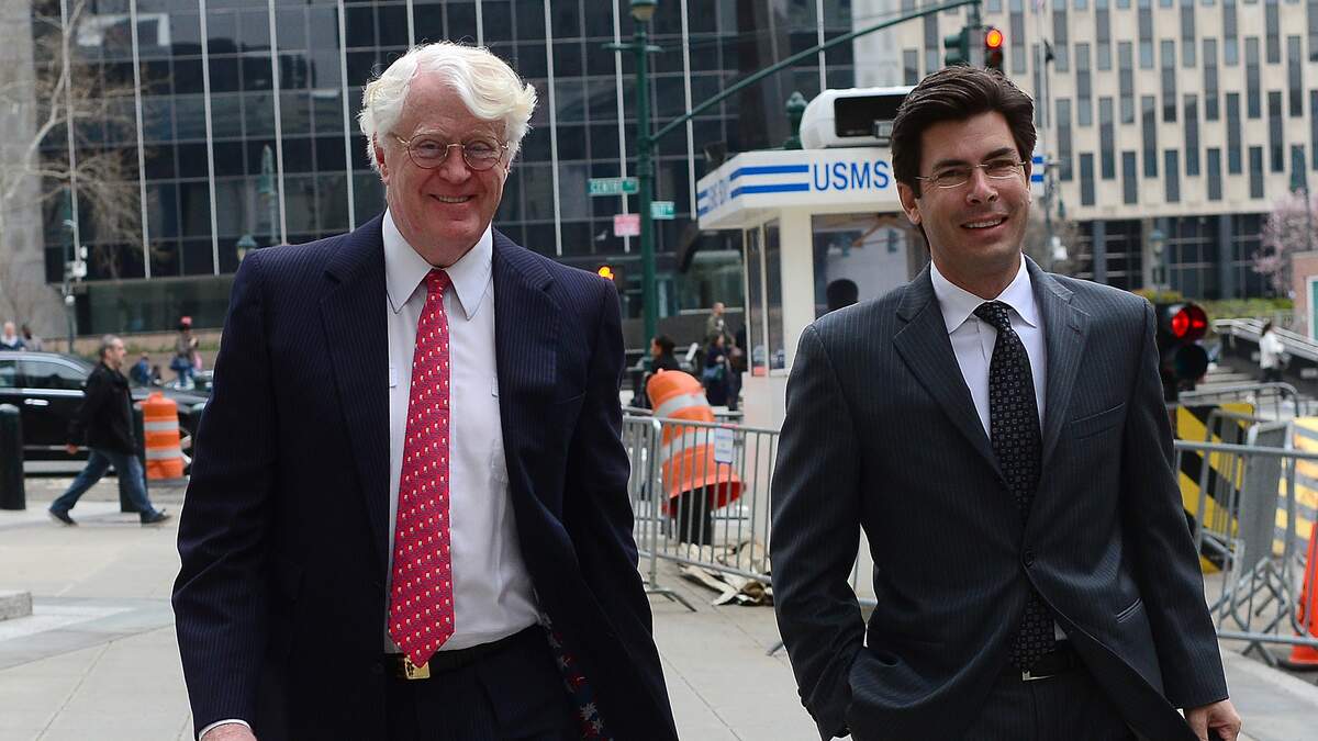 Florida energy magnate William Koch(L) arrives at Manhattan Federal Court to attend the closing arguments in his trial against California businessman Eric Greenberg, in New York, April 11, 2013. Koch launched a federal lawsuit charging Greenberg sold him 300,000 USD worth of vintage wine that turned out to be counterfeit. (Photo credit: Getty Images)
